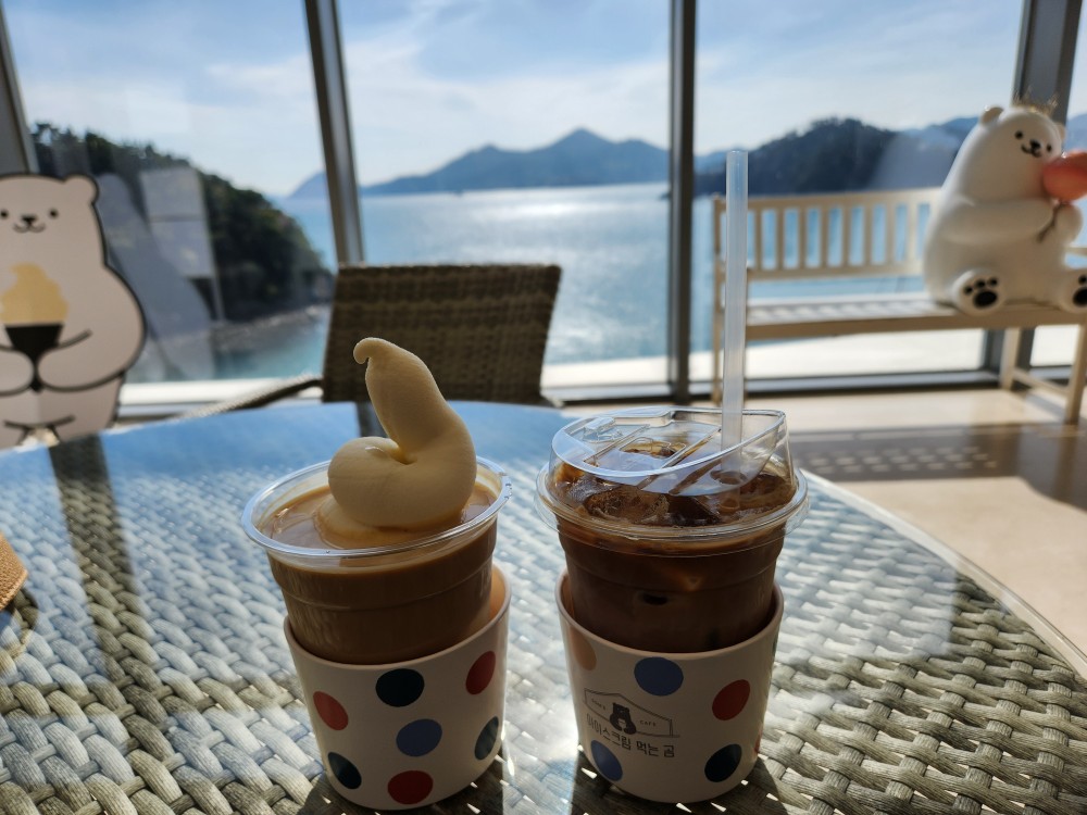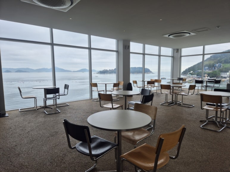 심해카페는 앞바다가 훤히 보이는 통창으로 앞바다를 바로 내려볼 수 있습니다.