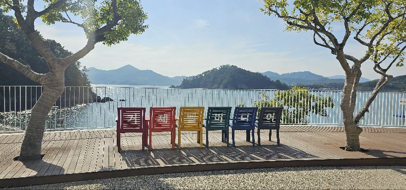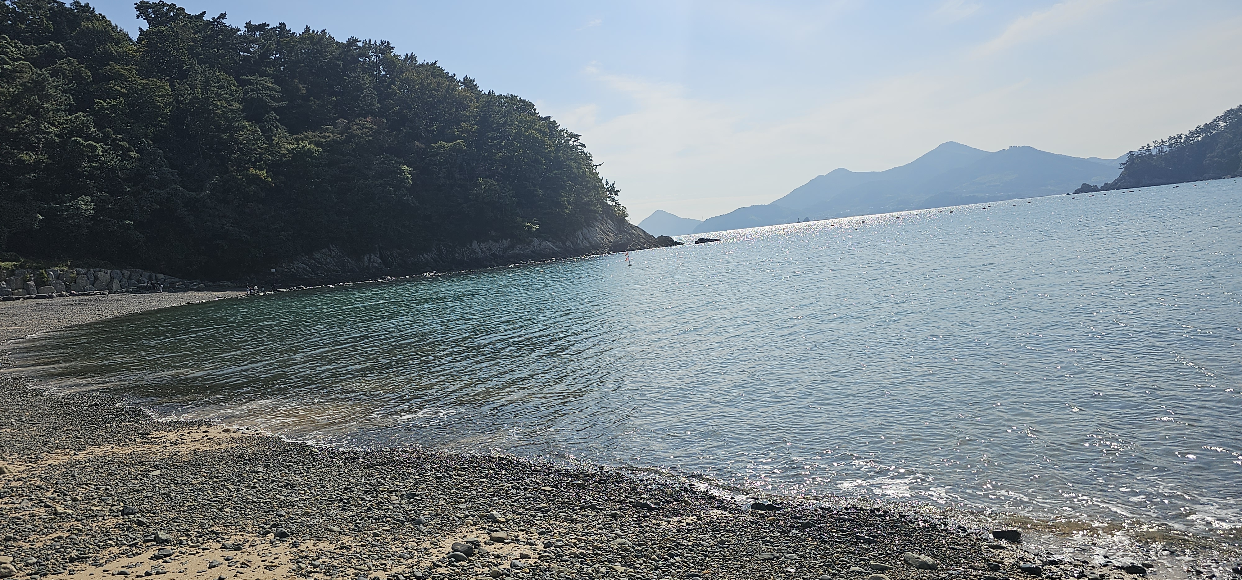 자갈돌과 기러기 앞바다의 대교뷰, 유람선등 바다에서만 느끼는 정취들과 섬들이 한눈에 들어왔어요.