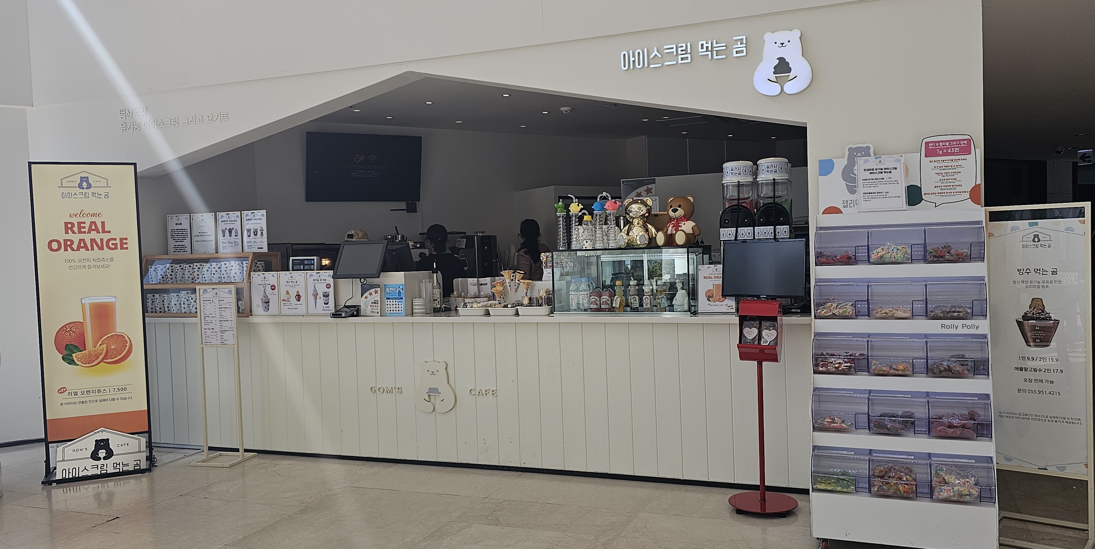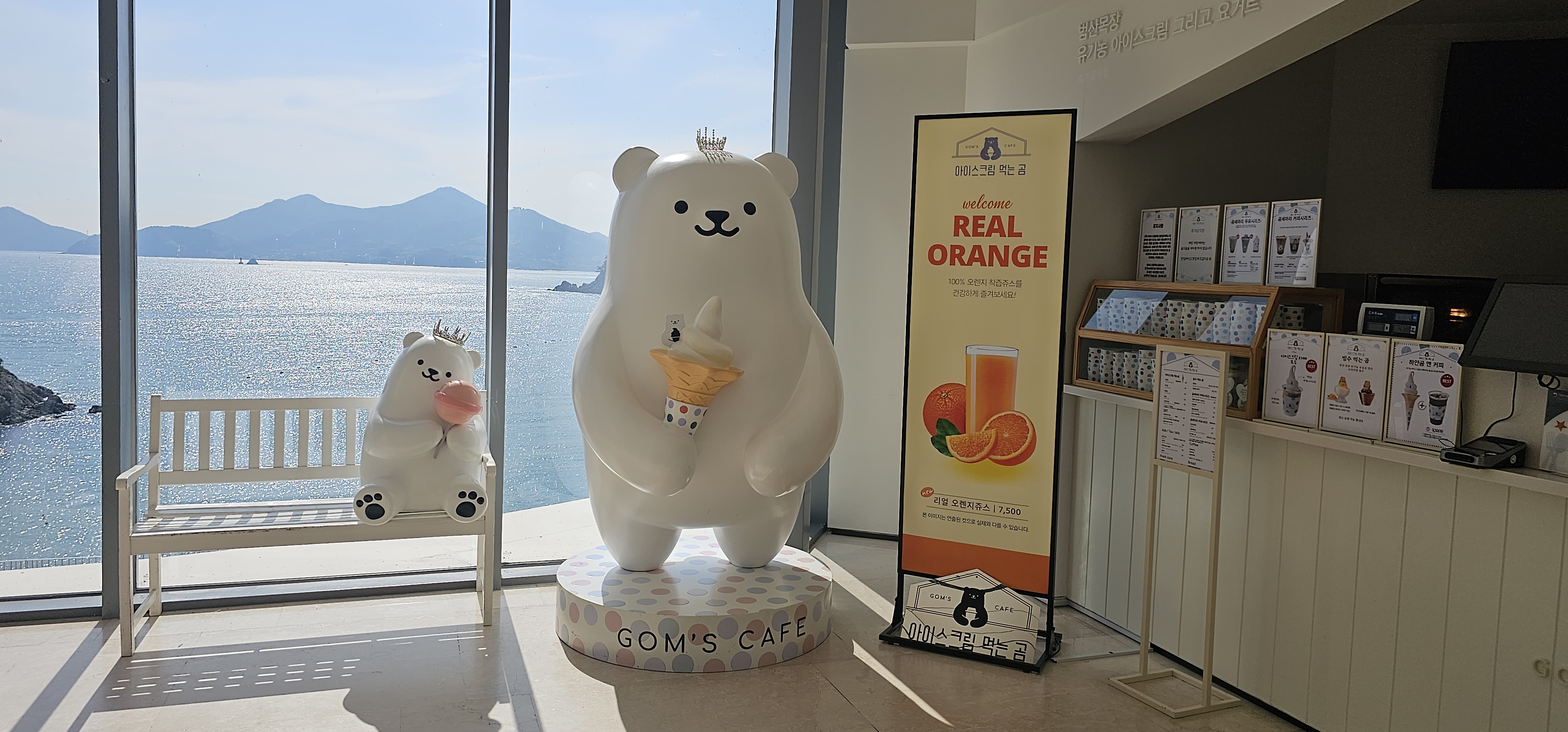 특히 리조트 바로 앞 광장 한쪽에 귀엽게 자리 잡은 '아이스크림 먹는 곰' 간판이 정말 눈길을 끌었어요. 여행에 대해 조금 아쉬워하던 친구들도 신기하다며 즐거워하더라고요.