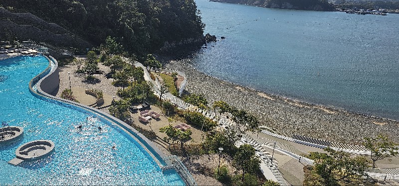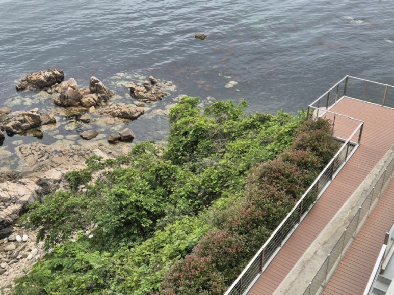 리조트 객실에서 내려다보이는 바다는 훌륭한 뷰를 선사합니다. 리조트 앞바다에 내려가 보니 바다내음, 파도 소리가 더 좋았습니다.