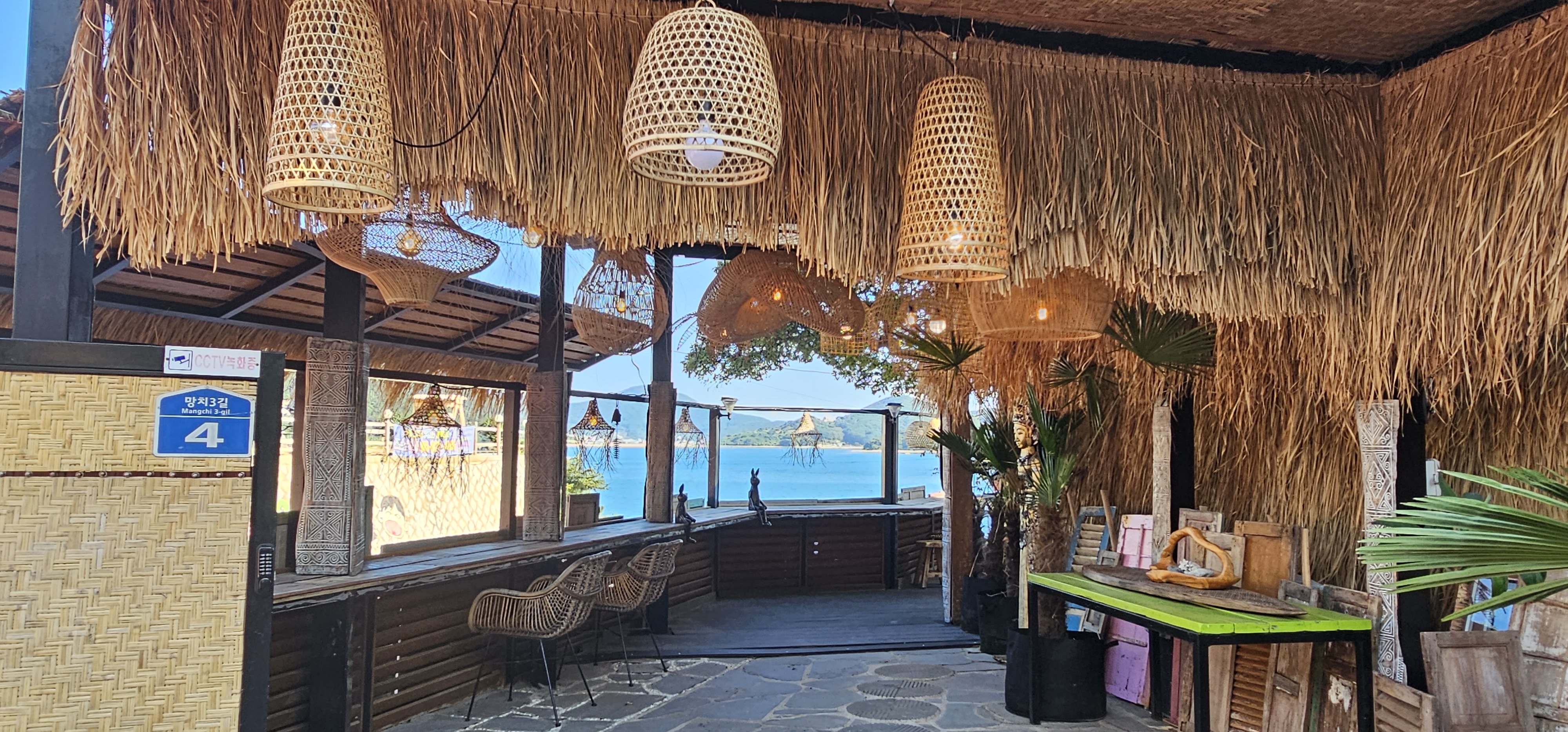 이제 좋은 얘기로 넘어가 볼까요? 카페 내부는 발리의 비치 카페처럼 꾸며져 있는데, 의자나 테이블, 장식품 하나하나 사진 찍고 싶을 정도로 매력적이었어요.