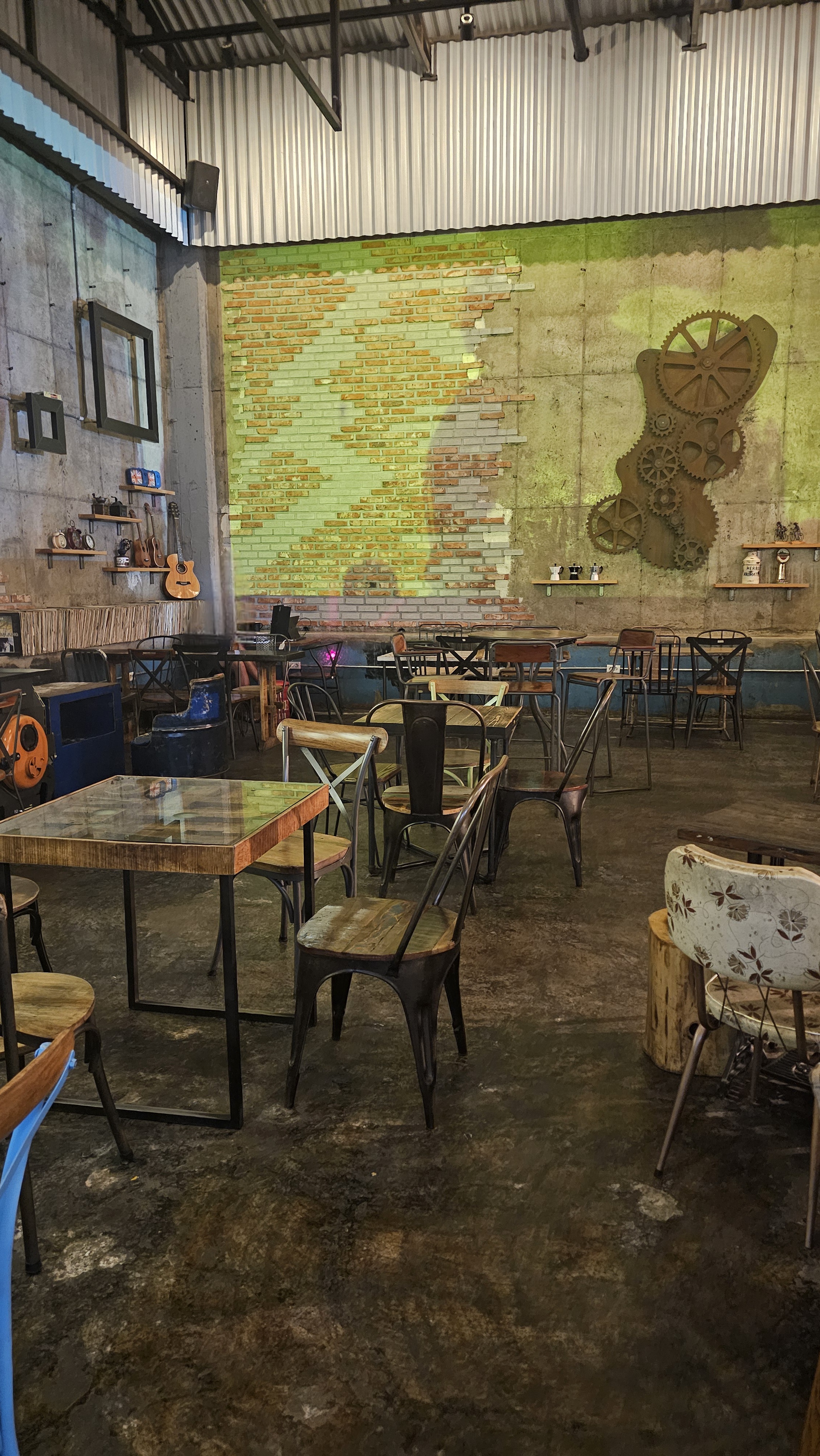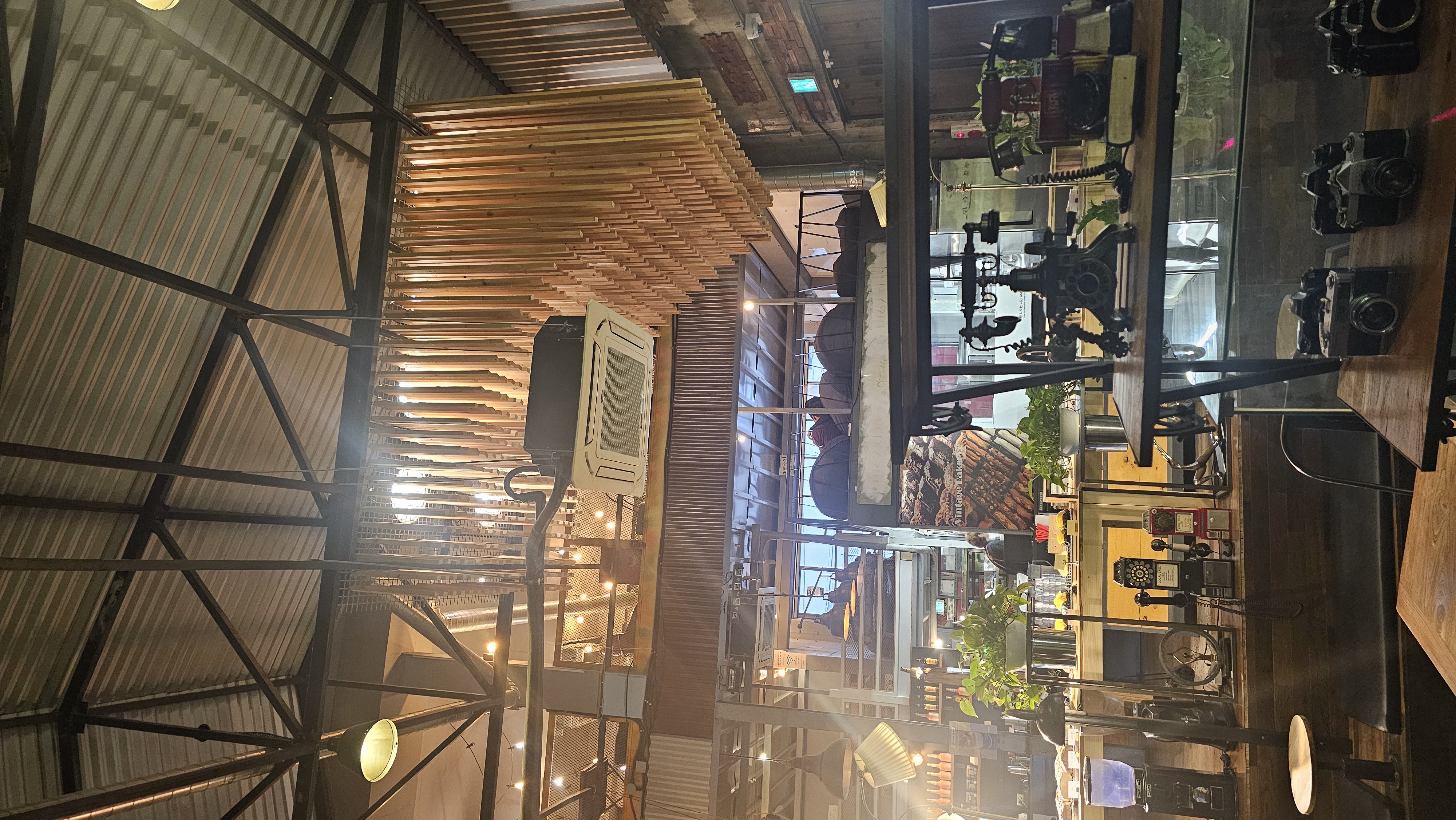 1층에 들어서자마자 탁 트인 높은 층고와 가운데 자리 잡은 중앙 홀이 눈에 띄었어요. 벽돌을 활용한 인더스트리얼 스타일과 중고 소품, 빈티지한 소품들이 어우러져 있는 모습이 근사했어요. 그리고 재즈 음악이 카페 곳곳에 퍼져서 감각적인 분위기를 배가시키더라고요. 한쪽 코너에는 오래된 풍금을 연상시키는 피아노가 놓여 있었고, 구석구석에 배치된 귀여운 곰인형들은 여기 사진 맛집이라는 확신을 줬어요. 분위기에 푹 빠져 그렇게 한두 시간 휙 지나가더랍니다.