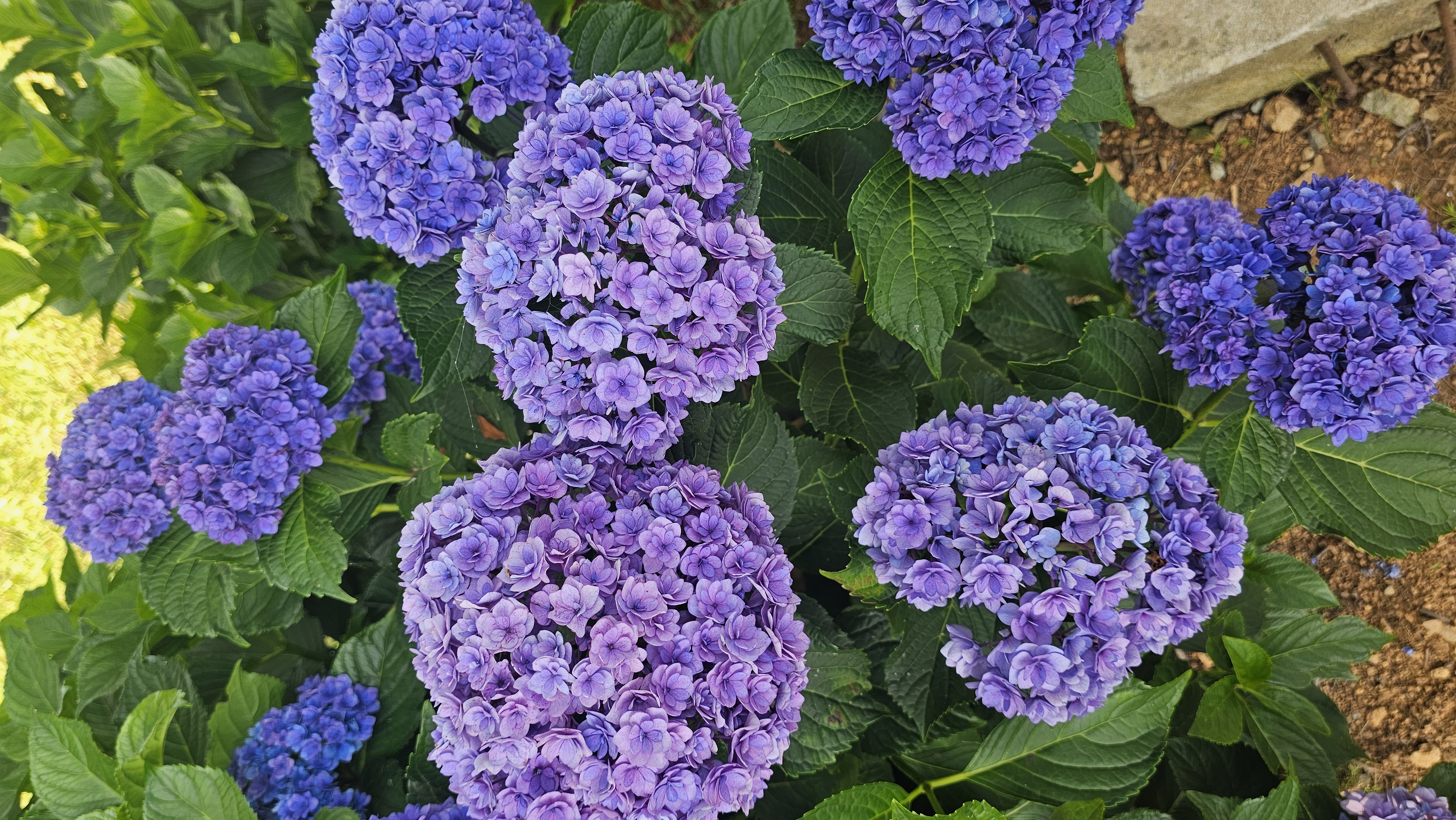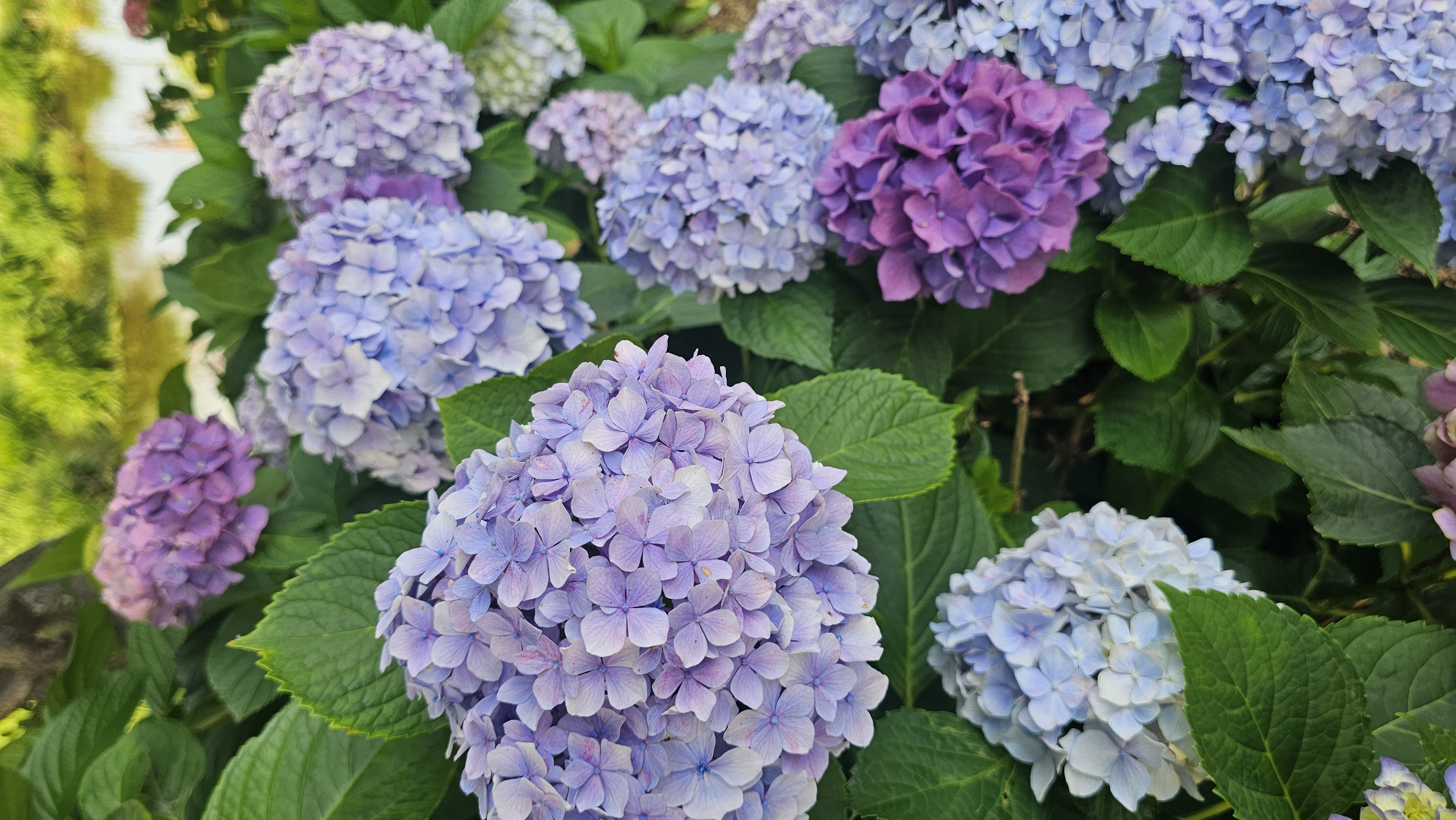 도착 첫 순간, 깊고 푸른 수국들이 눈앞에 펼쳐졌어요. 길게 뻗은 산책로와 비슷한 높이로 피어난 수국들이 정말 인상적이었죠. 아침 햇살을 받아 꽃잎이 반짝반짝 빛나던 모습은 잊을 수가 없어요.