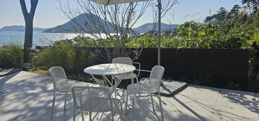 이 카페의 진짜 매력 포인트는 넓은 정원이라고 말할 수 있어. 나만의 공간 같은 느낌이 들 정도로 테이블 간 간격이 여유로워! 또한 초록 잔디와 바닷바람이 맞닿아 있어서 확 트인 자연을 즐길 수 있었어. 핸드폰 카메라만 켜도 바로 인생샷 가능! 특히 정원 쪽에서 바라보는 바다는 여유롭고 로맨틱해서, 친구든 가족이든 누구랑 와도 분위기 제대로 낼 수 있을 거 같아.