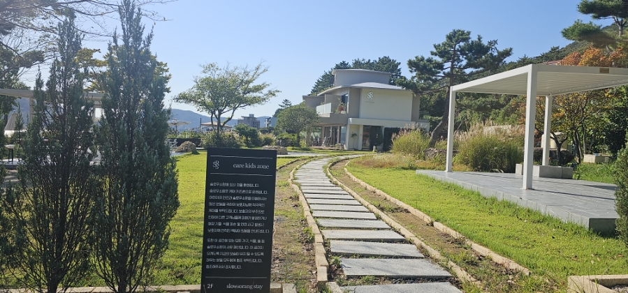 '스와르소랑', 처음 이름만 들으면 뭔가 독특하고 이국적이지 않아? 이곳은 거제의 해안도로 끝자락에 있어. 차로 이동하면 길가에 주차 공간도 잘 마련돼 있어서 좋은 편! 주변은 여유로운 시골 풍경인데, 가까이 가면 파란 바다와 넓은 정원이 반겨줘. 특히 드라이브 코스로도 굉장히 잘 어울려, 차에서 내리기 전에 창문 열고 바닷바람부터 한 번 느껴보는 걸 추천할게.