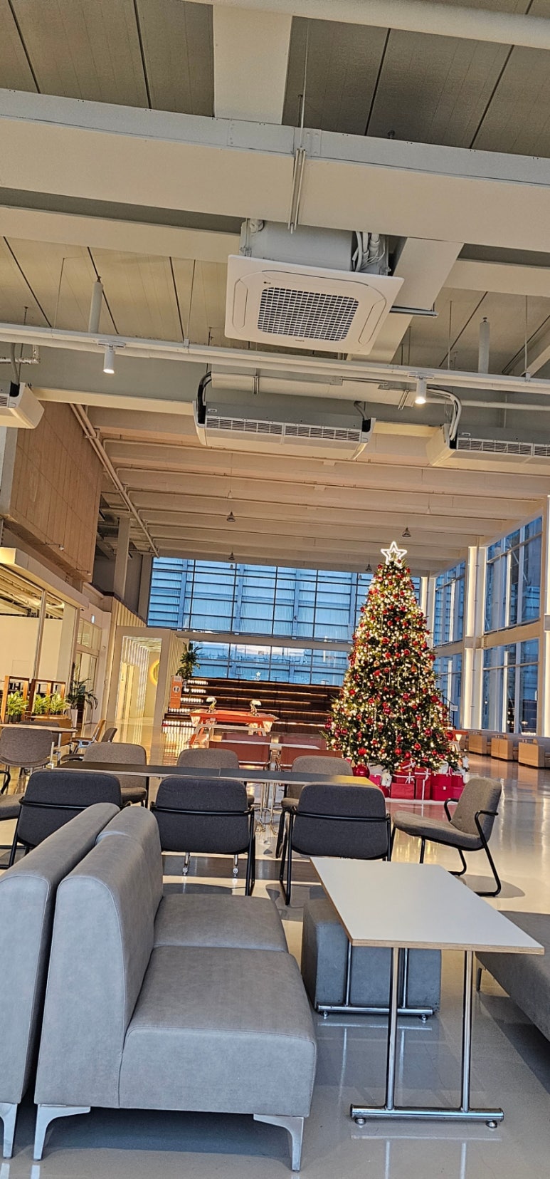 차에서 내리자마자 보이는 건 어마어마한 건물 크기와 독특한 디자인이야. 폐조선소를 리모델링했다는 게 단박에 느껴질 정도로 매력적인 외관이지. 주황색 포인트 컬러가 눈에 띄고, 크레인의 디자인을 그대로 살린 구조물이 멋스럽더라. 입구부터 웅장한 분위기에 놀라서 사진을 먼저 찍느라 정신 없었어. 어두운 밤엔 조명이 더해져서 건물 분위기가 한층 고급스럽고 세련돼 보여. 외부만 봐도 이미 시간이 너무 금방 가버렸어.