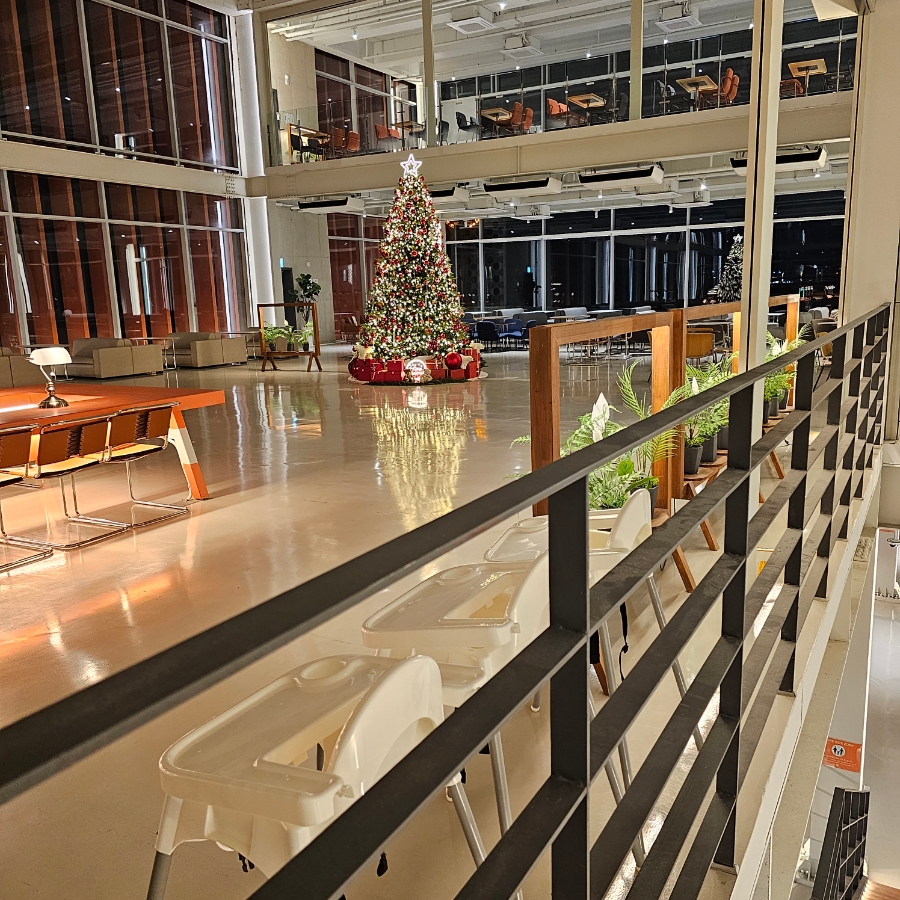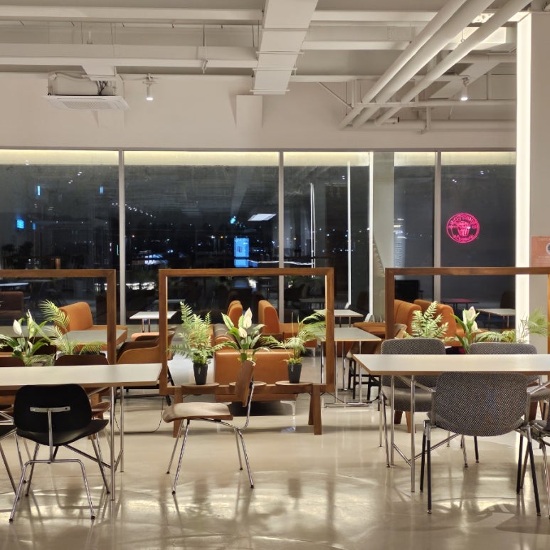 내부는 총 3층 구조로 되어 있어. 1층은 베이커리와 주문 공간이 중심인데, 빵 냄새가 솔솔 풍겨와서 입구에 들어서자마자 기분이 좋아지는 곳이야. 2층은 가족이나 친구끼리 오붓하게 시간을 보내기 좋고, 아이들과 함께라면 케어 키즈존이 마련돼 있어서 편리하게 이용 가능해. 3층은 성인 전용 노키즈존이라 확실히 더 조용하고 여유로웠어. 그리고 놓치지 말아야 할 루프탑! 거기서 내려다보는 대교뷰랑 석양은 직접 봐야 알 수 있어.