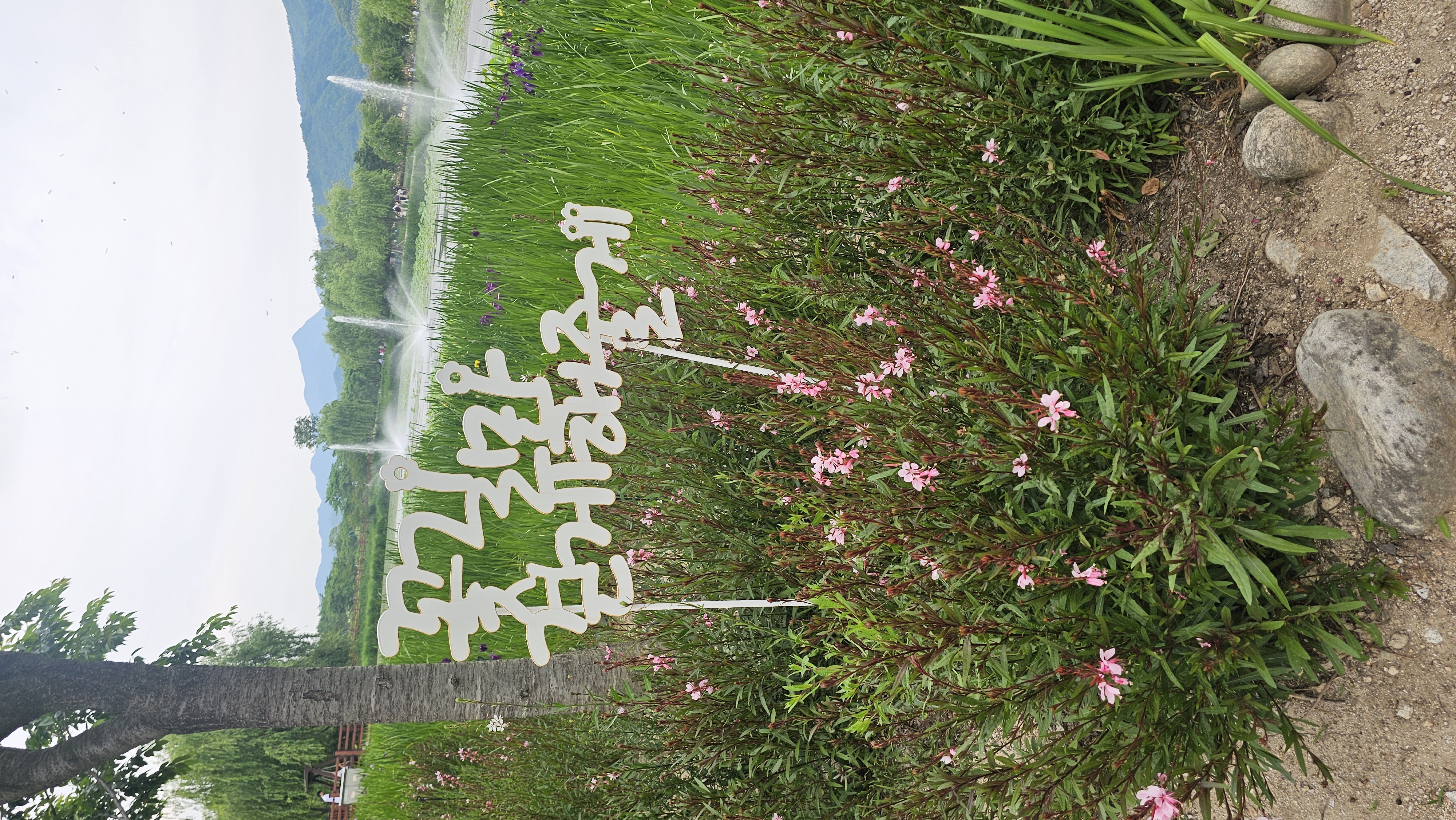 거창창포원 처음 도착했을 때, 가장 먼저 눈에 확 들어온 건 황강을 따라 펼쳐진 넓은 잔디밭과 다양한 꽃들! 특히 입구부터 나무로 덮힌 산책길과 알록달록한 꽃밭이 시선을 강탈했어요. 어디를 봐도 초록 초록한 풍경이 가득해 도시에서 받았던 스트레스를 날리기 좋은 환경이었죠.