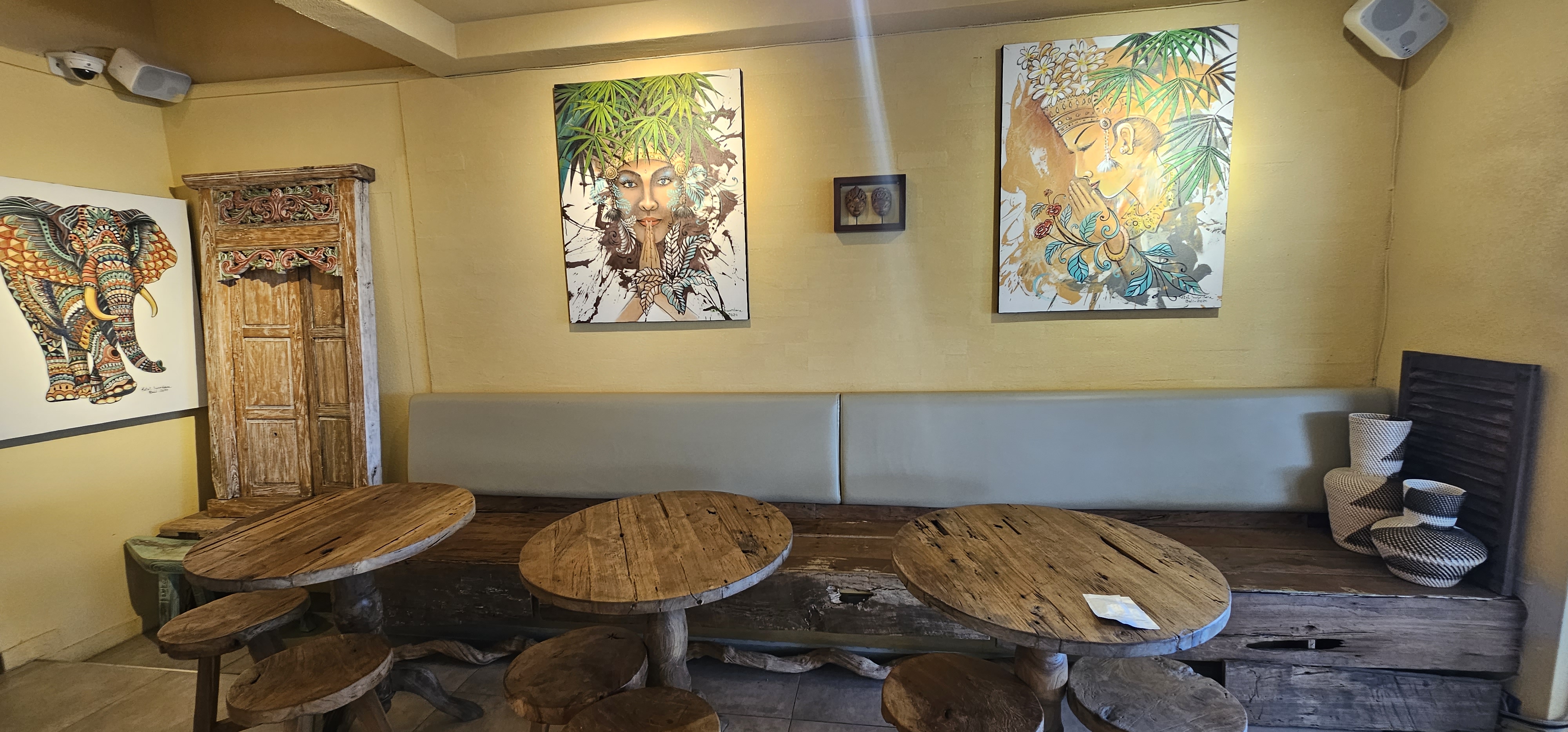 이제 좋은 얘기로 넘어가 볼까요? 카페 내부는 발리의 비치 카페처럼 꾸며져 있는데, 의자나 테이블, 장식품 하나하나 사진 찍고 싶을 정도로 매력적이었어요.